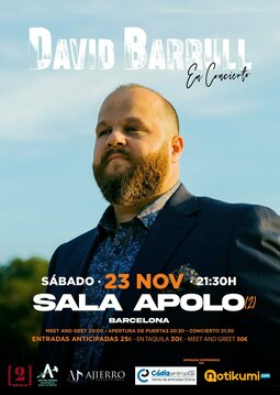 Como muchos, el también creció escuchando a uno de los artistas más grandes que ha dado el flamenco, Camarón de la Isla. Su forma de cantar, llena de matices, lo ha convertido en todo un referente para el mundo flamenco contemporáneo. El quejio de su voz cautivó a toda España, que le reconoció como uno de los talentos con más futuro del país. Su álbum debut, Sueños cumplidos (2014), consigue durante dos semanas estar en número 1 en ventas en toda España siendo disco de oro y platino. Tan solo meses más tarde editó su segundo trabajo, América (2014), lo hizo tras la buena acogida del primero. Una gran obra en la que fusiona pop melódico con la elegancia del jazz y el duende del flamenco. En 2016 edita el disco titulado El Pirata de tus sueños, David Barrull, quien conquistara a España con su voz partida en flamencura, firma su primer disco formado íntegramente por letras propias (sólo o en compañía de otros), demostrando que su carrera es de fondo y vino para quedarse, para ir dando pasos firmes y despresurados, para mostrarnos con calma pero sin dudar. Su temas superan el medio millón de visitas y en concreto Eterno bate todas las expectativas colocándose en el top 100 de vídeos musicales más vistos de YouTube. El próximo 23 de Octubre nos visita por primera vez en directo en la sala 2 de Apolo con una propuesta que será un recorrido por toda su discografía