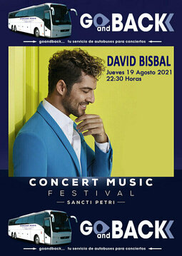 David Bisbal visitará el Concert Music Festival con su nuevo Tour EN TUS PLANES, para presentar en directo las canciones de su nuevo disco, entre las que se incluyen sus últimos éxitos A Partir de Hoy, Perdón, Bésame y Abriré la Puerta, que se suman a un repertorio lleno de números 1, como Ave María, Bulería, A partir de hoy o Lloraré, entre otras. Sin olvidar, por supuesto, los momentos más íntimos, en los que la emoción llega con temas como Mi Princesa, Silencio, El Ruido o Dígale.